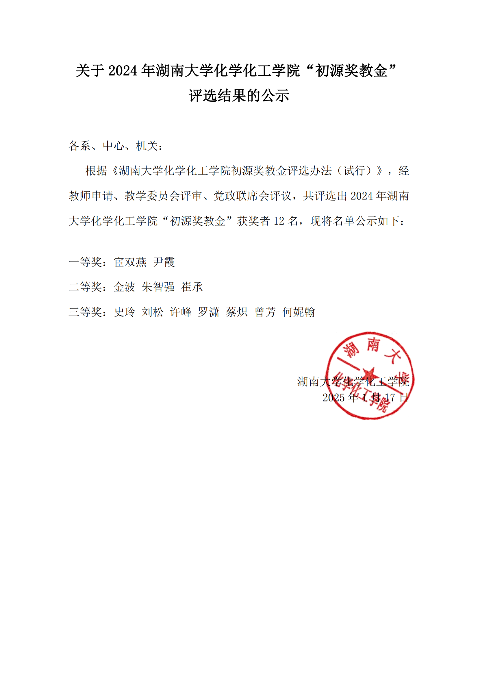 关于 2024年绿帽小说 绿帽小说 “初源奖教金评选结果的公示