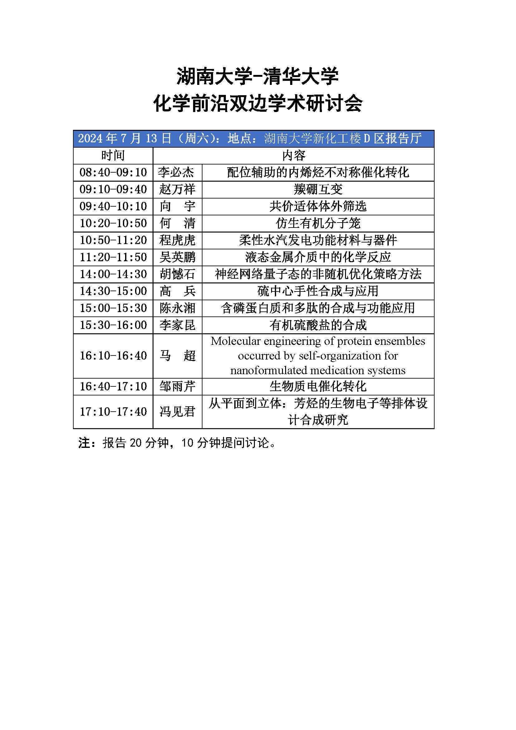 2024年7月13日绿帽小说 -清华大学化学前沿双边学术研讨会系列学术报告