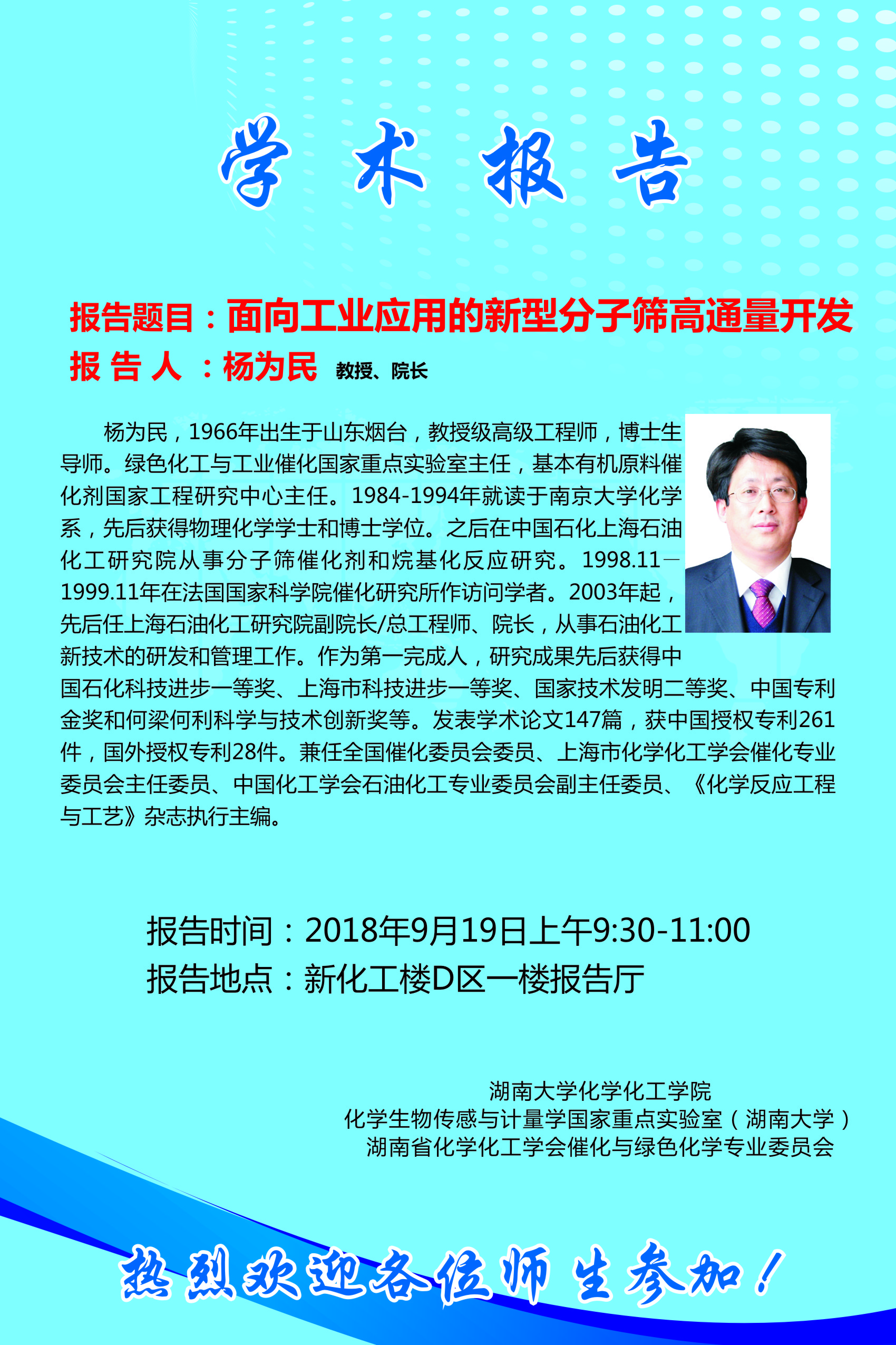 2018年9月19日上海石油化工研究院杨为民教授学术报告会