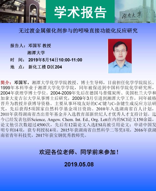2019年5月14日湘潭大学邓国军教授学术报告会