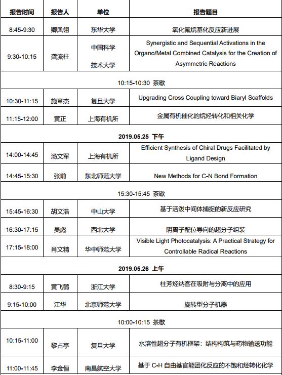 2019年5月25-26日绿帽小说 有机化学前沿论坛