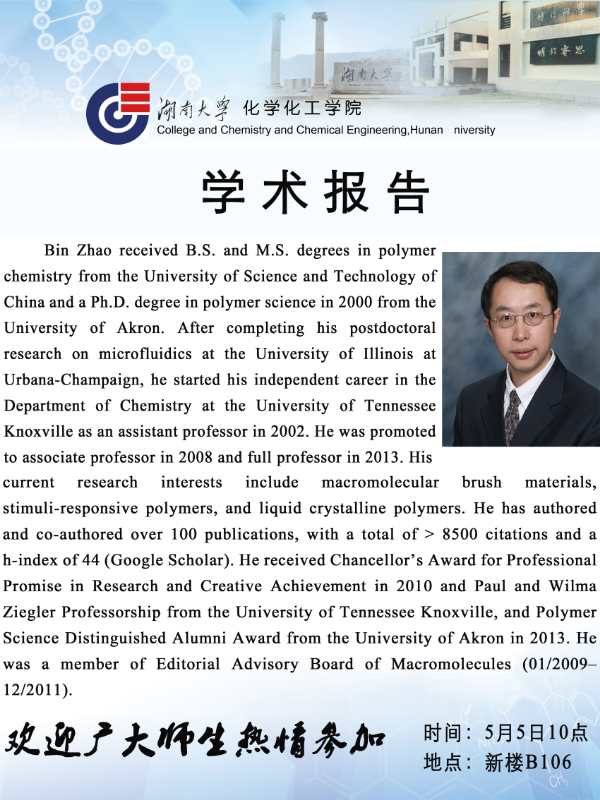 2019年5月5日田纳西大学Zhao Bin教授学术报告会