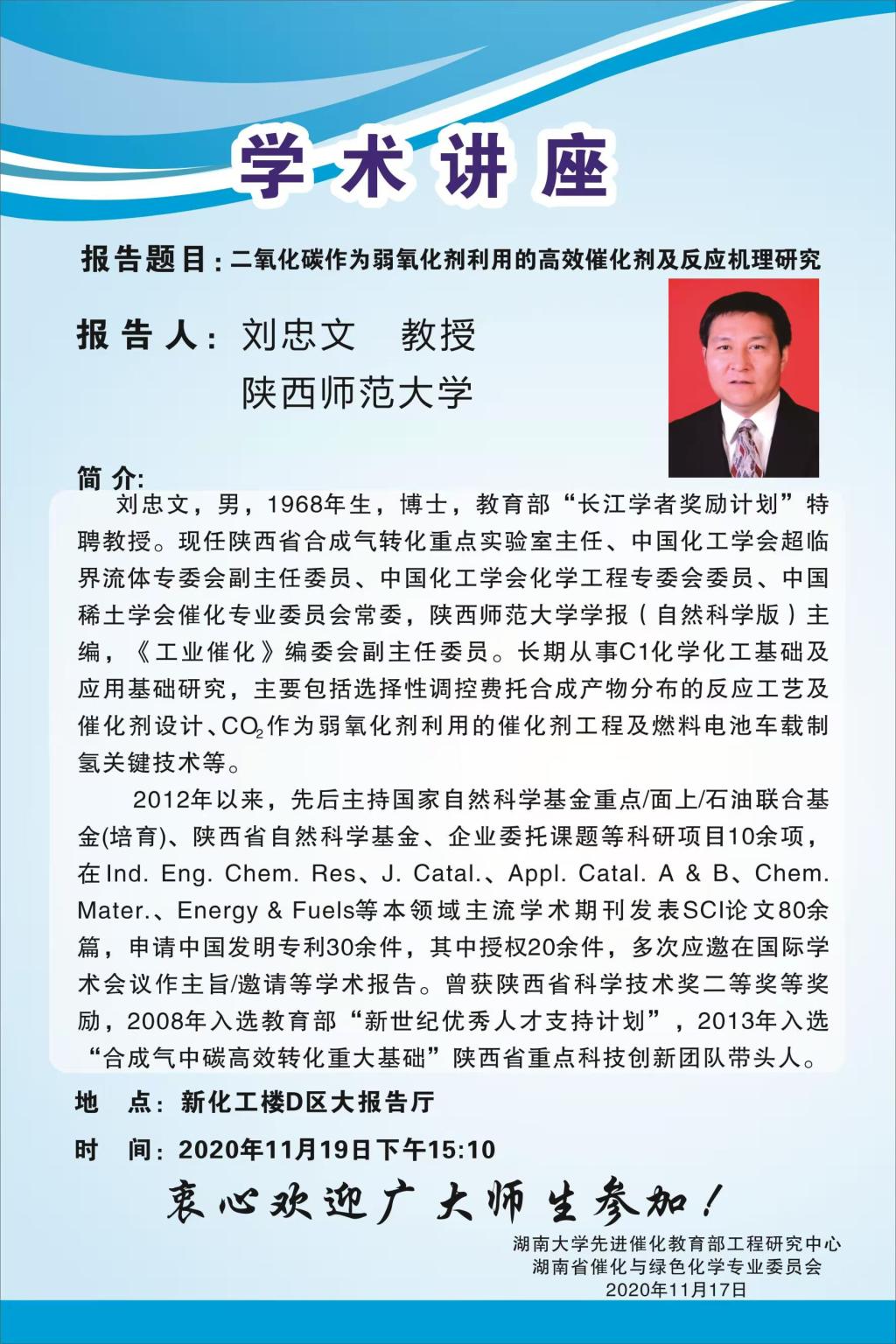 2020年11月19日陕西师范大学刘忠文教授学术报告会