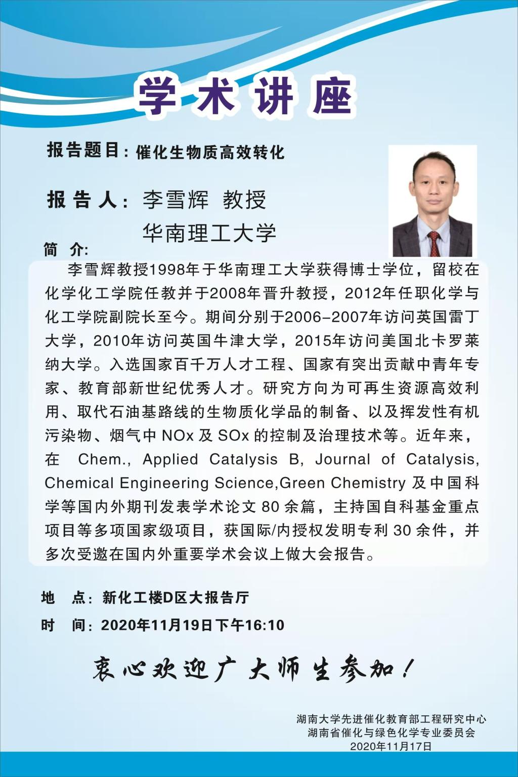2020年11月19日华南理工大学李雪辉教授学术报告会