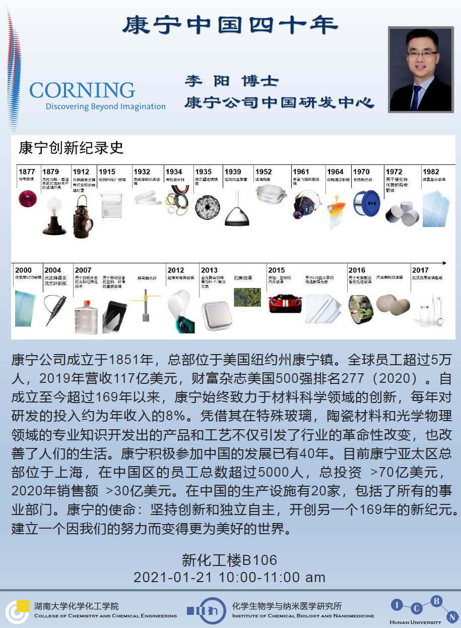 2021年1月20日康宁公司中国研发中心李阳博士学术报告会