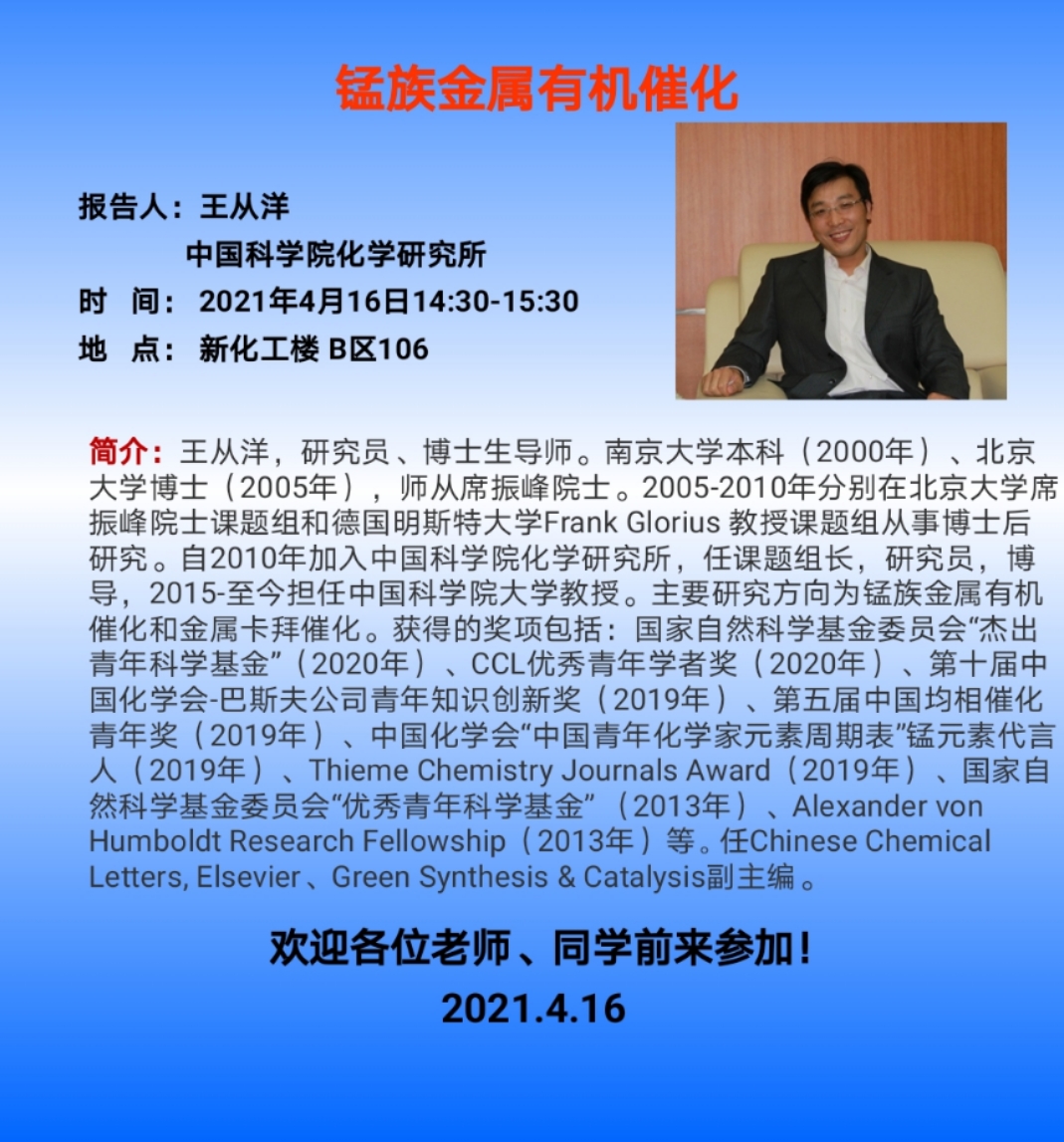 2021年4月16日中国科学院化学研究所王从洋教授学术报告会